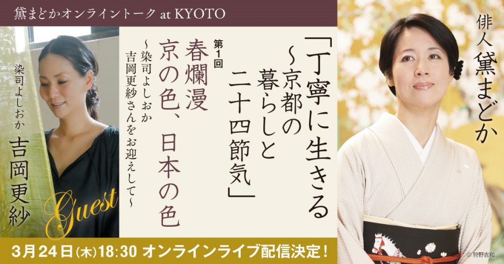3月24日(木)、京都×俳句プロジェクトの代表世話人 黛まどかが「黛まどかオンライントークat KYOTO」に出演します。